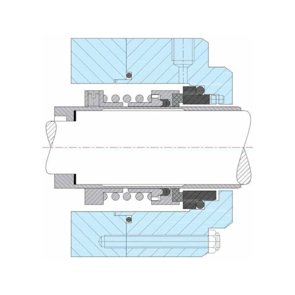 Series 14V are single coil spring unbalanced seals designed for dirty media and clogging type application. These seal are not effected by the direction of shaft rotation, as it is driven by lugs. The PTFE double V-Packing’s help to get perfect dynamic sealing. These seal are ideal to minimize the stock as the seal components are interchangeable.